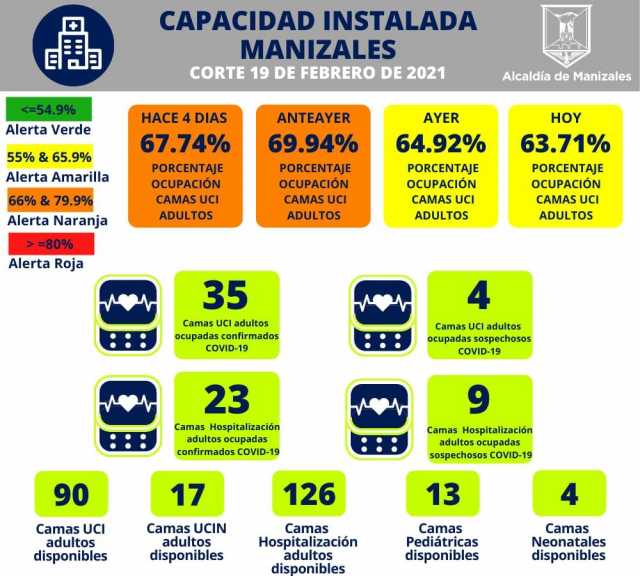 La entidad también notificó tres personas fallecidas: dos en Manizales y uno en La Dorada. En el departamento han muerto 954 personas.