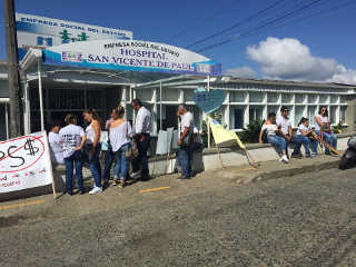 Los empleados del hospital San Vicente de Paul y representantes de los usuarios de la salud en Aranzazu se sumaron al plantón nacional. El centro asistencial solo atendió servicio de Urgencias.