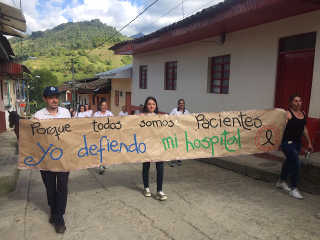 Los empleados del hospital San Vicente de Paul de Anserma marcharon para exigir que se acabe la intermediación económica que ejercen las diferentes EPS.