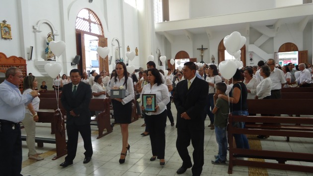 Las honras fúnebres del pequeño se realizaron el sábado en el templo del Carmen. En medio de una calle de honor formada por los compañeros de preescolar del Colegio INTECS y del Club Deportivo Astros, quienes llevaban bombas blancas para despedirlo.