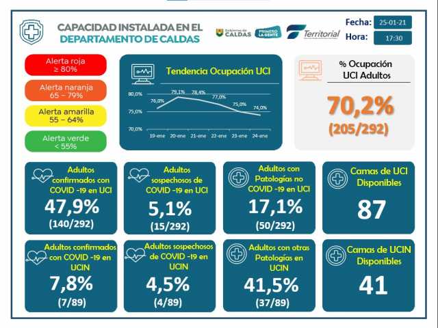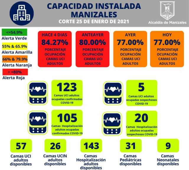 Los fallecimientos son de: Manizales (3), La Dorada (2), Viterbo (1), Supía (1) y Villamaría (1). En Caldas hay 20.919 recuperados y 19.543 casos activos.