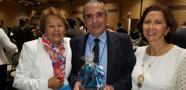 María Eugenia López, vicepresidenta del Consejo Seccional de la Judicatura de Caldas, José Fernando Salazar Chaves, director seccional de la Administración Judicial de Caldas y Flor Eucaris Díaz Buitrago, presidenta Consejo Seccional de la Judicatura al momento de recibir el reconocimiento.