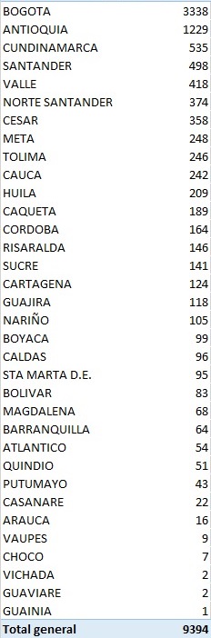 En el país el Instituto Nacional de Salud reportó 9.394 casos nuevos. Hoy se procesaron: 24.966 pruebas PCR y 5.386 de antígenos