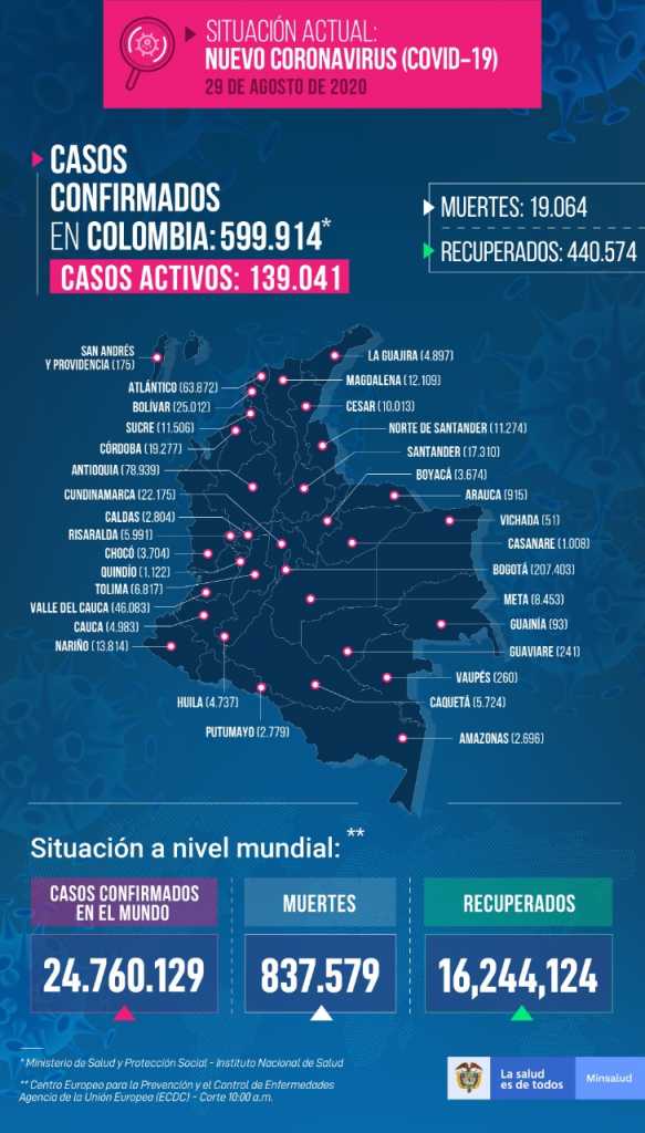 En el país se han confirmado 500.914 casos de covid-19, 440.574 se han recuperado, 139.041 son casos activos y 19.064 murieron.