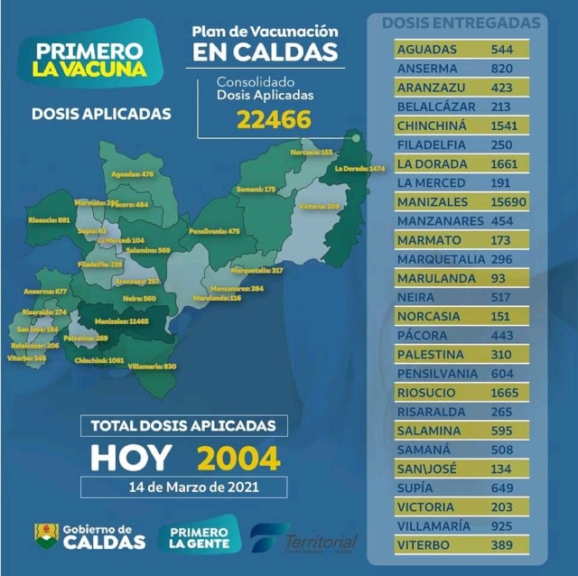 La Dirección Territorial de Salud de Caldas reportó este domingo 29 nuevos casos de covid-19 y un fallecimiento en Manizales. Con esta cifra asciende a 46.540 los confirmados.