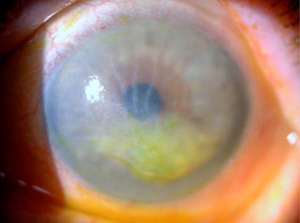 DESPUÉS: Así se vio el ojo de la paciente tras la cirugía. Es evidente la transparencia de la córnea.