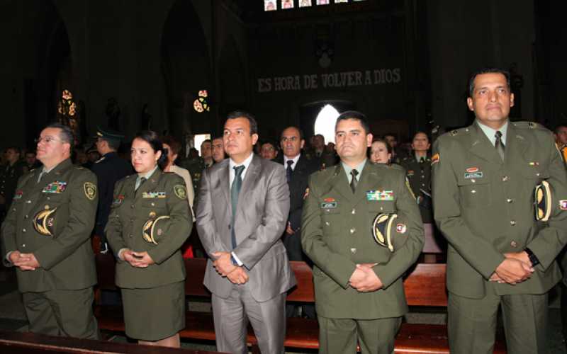 El Departamento de Policía de Caldas celebró el 122º aniversario de la Policía Nacional con una misa en acción de gracias en la Catedral Basílica de Manizales.