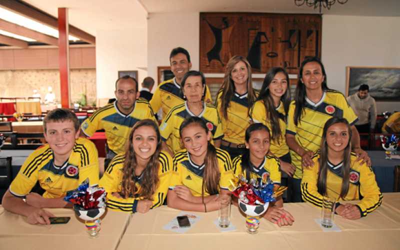 Rosa Prieto de Sánchez se reunió con algunos de sus hijos y nietos, en un almuerzo en el Club Manizales, para celebrar el partido de la selección Colombia.