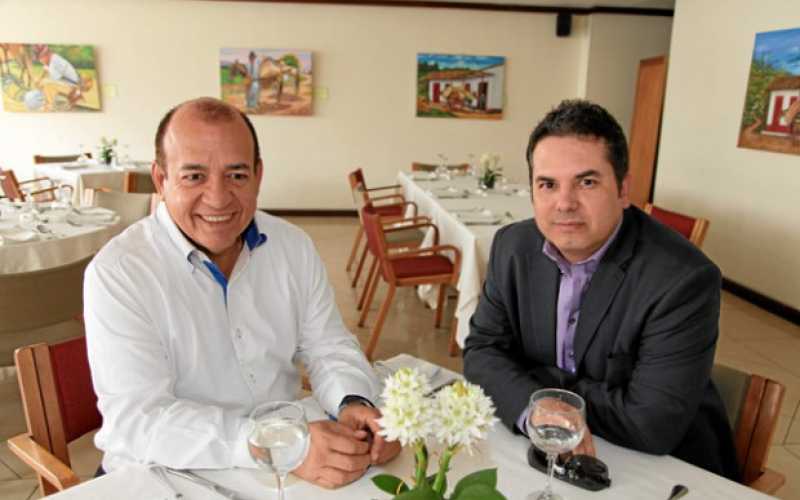 El gerente de la empresa de seguros Lafer, Harold Larrahondo Barona y el gerente de Susuerte S.A, Julián Hurtado Quintero, tuvieron un almuerzo en el Hotel Las Colinas.