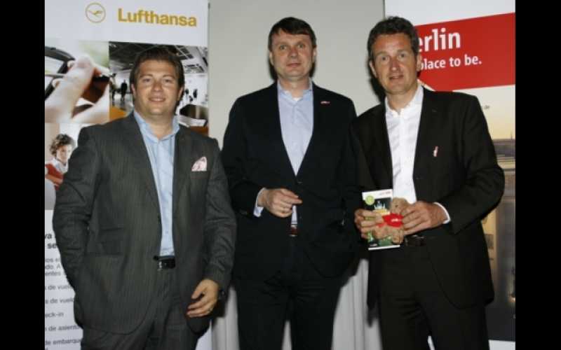 Felipe Bonifatti, director general de Lufthansa; Burkhard Kieker, director ejecutivo de VisitBerlin, y Christian Täenzler, portavoz de la Oficina de Turismo de Berlín.