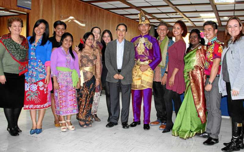 Carlos Alberto Ospina Herrera, rector encargado de la Universidad de Caldas, le dio la bienvenida a 11 guías turísticos de Brasil, Indonesia y Malasia que llegaron a estudiar español en la institución durante un semestre con el programa Ele-Focalae.