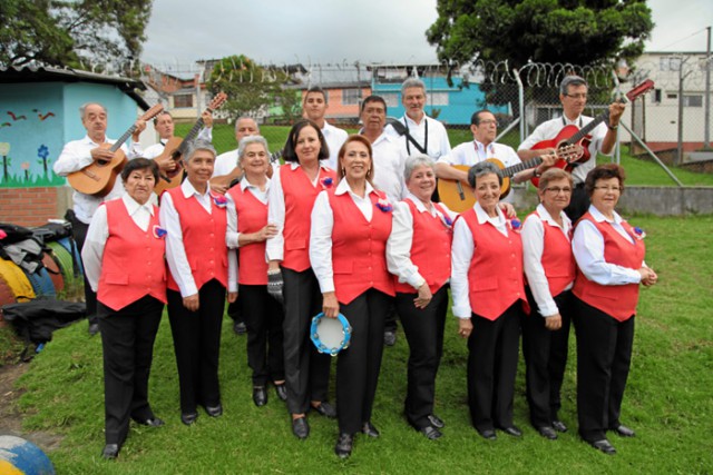 adultas mayores del barrio. La actividad contó con la participación del grupo musical Voces de Siempre.