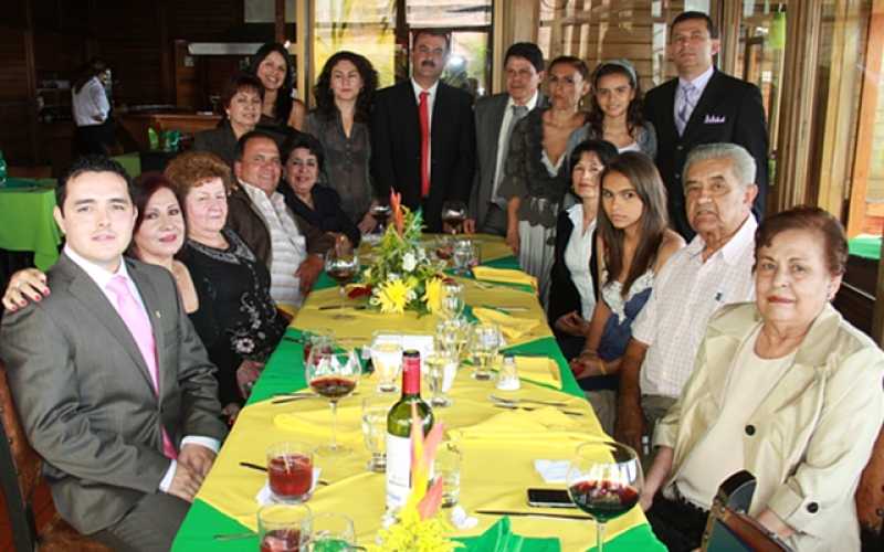 Daniel López Salazar, Martha Cecilia Salazar Cárdenas, Marina Salazar Cárdenas, Jorge Hernán Díaz Bertancourth, Fabiola Salazar Cárdenas, Luz Elena Gálvez Marín, Margarita Henao López, Arcesio López Ríos y Miriam Buriticá Marín. De pie: María Elena Salazar Cárdenas, Laura Giraldo Gómez, María Orozco Ramírez, John Jairo López Buriticá, Juan B. Giraldo Cardona, Patricia López Buriticá, Sara Henao López y Javier Augusto López Buriticá.