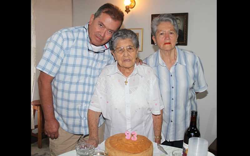 La homenajeada aparece en compañía de sus hijos Germán y Amilbia Serna Valencia.