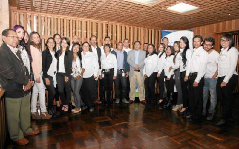 El rector de la Universidad de Caldas, Felipe César Londoño; el alcalde de Manizales, José Octavio Cardona; el gerente del Instituto de Cultura y Turismo de Manizales, Héctor Fernando Ortiz, el artista César López, y Tania Camila Ariza, líder juvenil vinculada al proyecto de las Casas de la Cultura, acompañan al grupo que recibió el certificado de asistencia al diplomado: Carolina Aldana, Janeth Omaira Colimba, Vanesa Estrada, Geraldine López, María Rocío Cifuentes, Juan Pablo Mejía, Gloria Osorno, Paula Andrea Gómez, Johann Bernal, Juan David Ramírez, Nataly Ferreira, Jorge Blandón, Ancízar Londoño, Jackson Cardona, John Freddy Díaz, Patricia Salazar, María Camila Díaz, Diana Lucía Echeverri, Genaro Márquez, Alfonso López, María Cristina López, Mauricio Marín, Andrea Guapacha, Sandra Trujillo, Natalia Loaiza, Tania Camila Ariza, Estefanía Arias y Carlos Andrés Rodríguez.