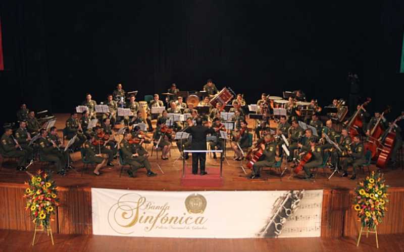 La Banda Sinfónica de la Policía Nacional de Colombia ofreció un concierto en el Teatro Los Fundadores durante la gira conmemorativa del centenario de la institución.