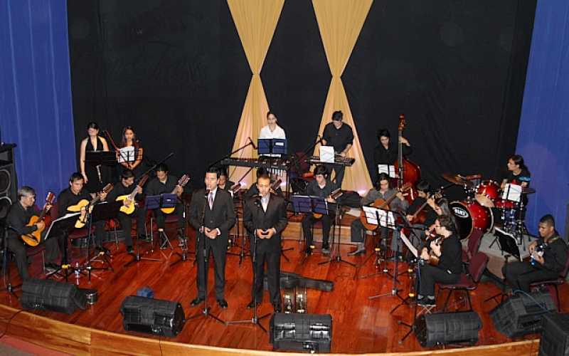 En el auditorio Hernando Aristizábal Botero de Confamiliares se presentó en concierto la Orquesta Típica Contrastes y el Dueto vocal masculino, integrados por estudiantes de música de la Universidad de Caldas.