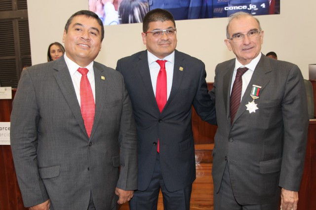 diálogos con las Farc, con la distinción Gran Oficial del Concejo de Manizales, máxima distinción que entrega la corporación.