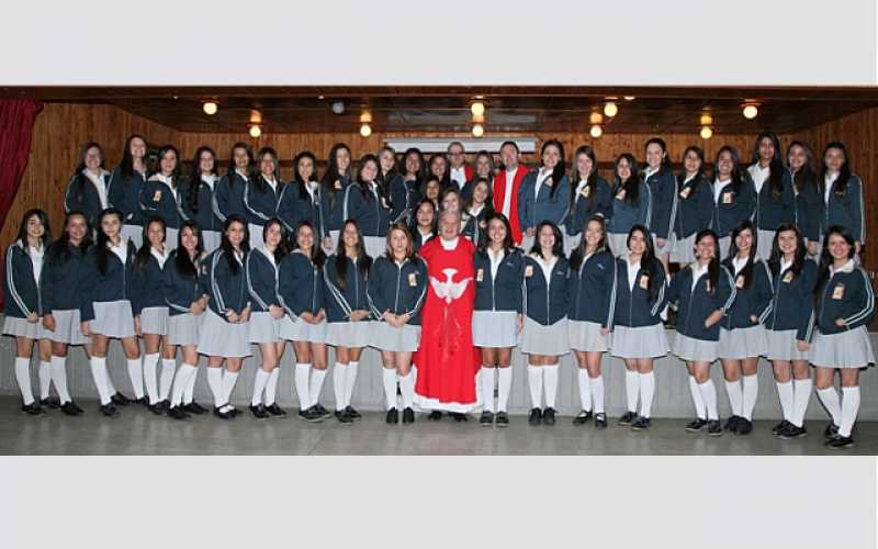 Monseñor Jorge Luján Zapata, rector del Liceo Arquidiócesano de Nuestra Señora, impuso el sacramento de la Confirmación a los alumnos de las secciones masculina y femenina en ceremonia que concelebró con los capellanes de las secciones.