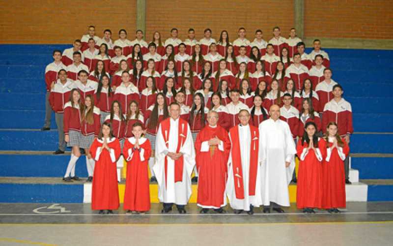 74 estudiantes del Colegio San Luis Gonzaga recibieron el sacramento de la Confirmación, en ceremonia presidida por el presbítero Efraín Castaño Arboleda, vicario general de la Arquidiócesis de Manizales.
