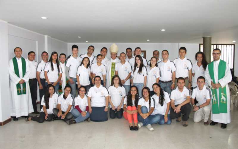 Monseñor Gonzalo Restrepo Restrepo ofició la eucaristía que se celebró en la sede del Cecam para despedir al grupo que viajará por Manizales a la Jornada mundial de la juventud que se realizará del 23 al 28 de julio en Río de Janeiro.