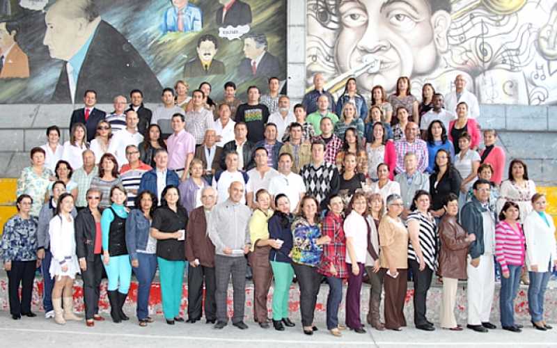 Detrás: María Leticia Soto, Isabel González, Gerardo Giraldo, Luz Marelby Giraldo, Luis Gonzaga Arroyave, Fabio Echeverri, Hermelinda Vallejo, Juan Alberto Acevedo, Francisco Javier Ruiz, Julián Ceballos, Germán Antonio Marín, Amparo Vergara, Julialba Arias, David Ruiz, Alcira Valbuena, Kelly Johanna Aguirre y María Zuluaga. Maribel Urrea, Ana Sobeida Parra, María Eugenia Cardona, Eduardo Cardona, Natalia Buitrago, Edison Vallejo, John Jairo Acevedo, José Mario Ramírez, Amado de Jesús Montoya, Juan Antonio Hernández, José Grey Bejarano, Mauricio Henao, Sandra Liliana Cardona, Norma Constanza Valencia, Pedro José Hoyos, Martha Lucía Tobón, Floralba Cortés y Margarita Lucía Salazar. Jorge Hernán Arias, José Danilo Pérez, Óscar Villa, Marlon Jiménez, José Paulo Pacheco, Andrés Arias, Pedro José Hoyos, Alba Lucía Castaño, Julián Ricardo Gómez, María Esneda Pineda, Alcira Monsalve, Alba Lucía Pérez, Idalba Duque, Édgar Mario Vergara y Lucero Mejía. Laina Solana Betancourt, Luz Marina Gómez, Janeth Diosa González, Jorge Alberto Ravagli, María Cecilia Herrera, María Helena Vargas y Luz Stella Castellanos.
