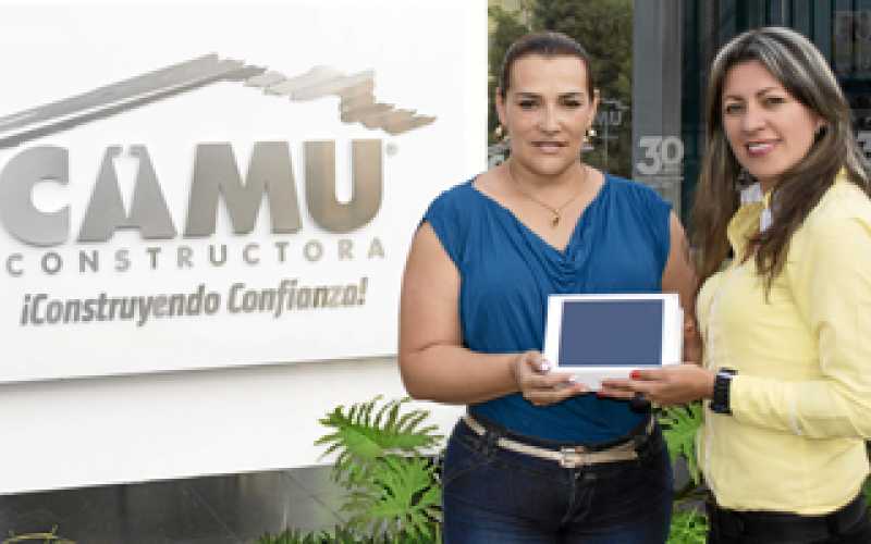 La Constructora Camú entregó a Yolanda Restrepo el iPad mini que sorteó por el uso de la aplicación Hogarapp.