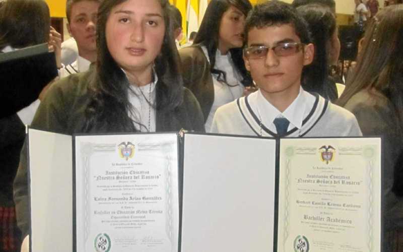 66 jóvenes recibieron el título de bachilleres académicos y comerciales que les otorgó la institución educativa Nuestra Señora del Rosario de Manzanares. La ceremonia se realizó en el Centro cultural y de la juventud, después de la eucaristía en acción de gracias en el templo San Antonio.