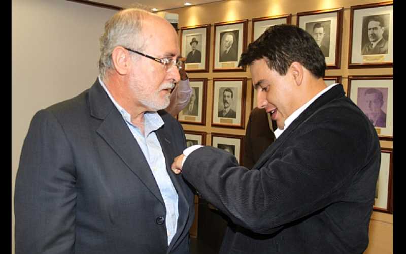 El alcalde Jorge Eduardo Rojas impuso el Escudo de Manizales en la categoría Gran Escudo al gobernador de Caldas, Guido Echeverri Piedrahíta, como homenaje de reconocimiento a su gestión.
