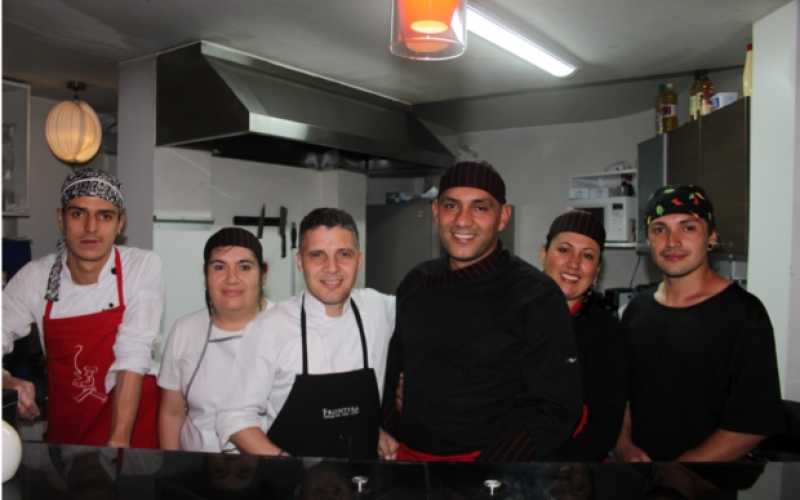 Fotos | Argemiro Idárraga | LA PATRIA. Los empleados del nuevo restaurante: David Aristizábal Botero, Graciela López Montoya, Jorge Aranda Guzmán, Gustavo Carmona Gómez, Margarita María Ortiz Arías y Daniel Parra Hernández.