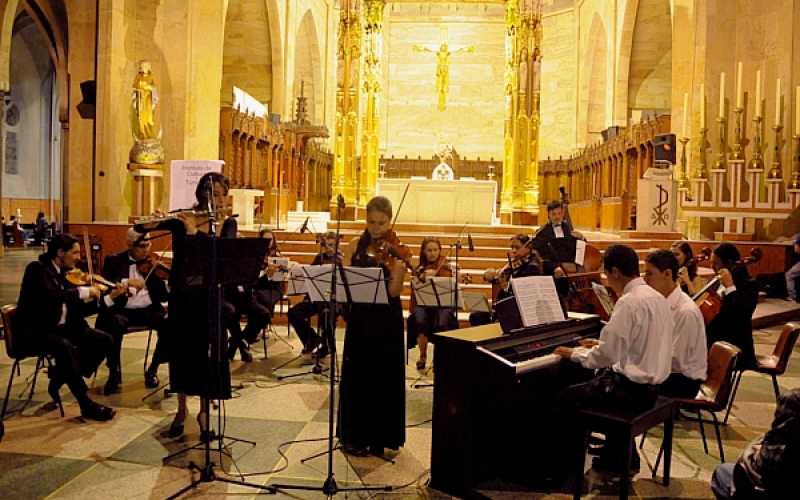 La Orquesta de Cámara de Caldas dio el concierto de apertura al IV Festival de Música Sacra en la Catedral Basílica, donde también se inauguró la exposición Arte y Pasión, organizada por la Arquidiócesis de Manizales.