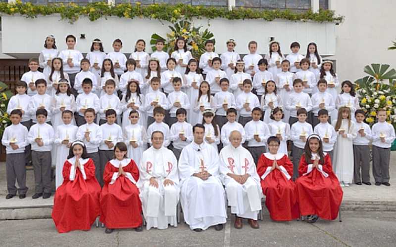 59 alumnos de cuarto grado del Colegio San Luis Gonzaga recibieron el sacramento de la Comunión en ceremonia que se realizó el 16 de marzo en la capilla del Colegio.