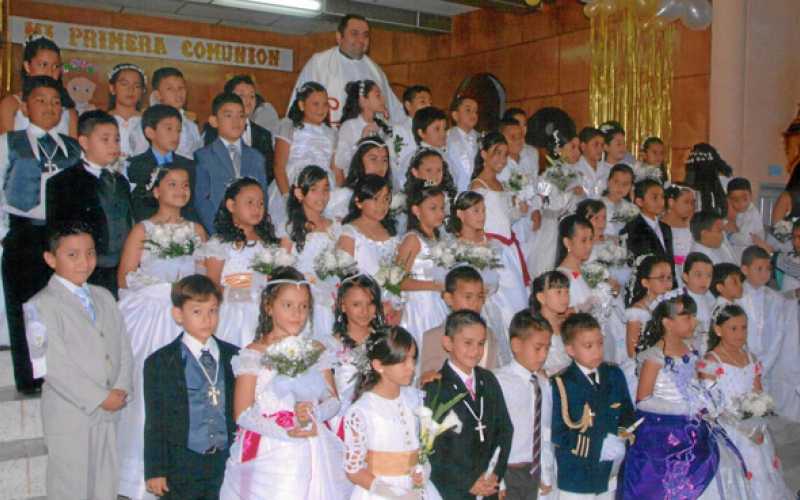Alumnos del colegio Santa Teresita de Chinchiná recibieron el sacramento de la Comunión en eucaristía que se celebró en el salón de actos de la institución.