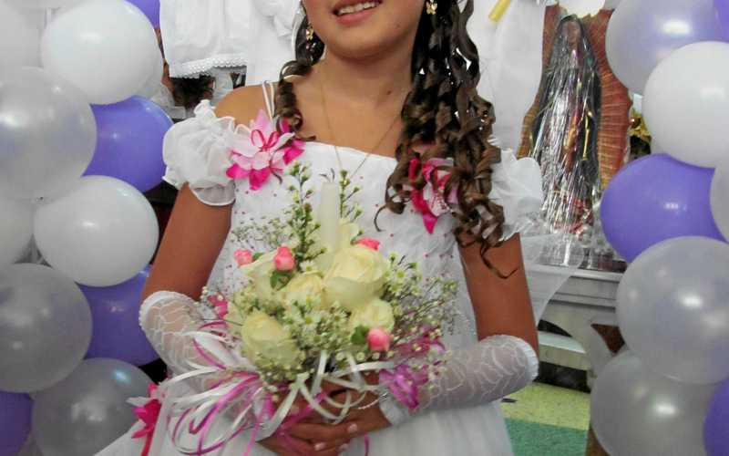 María Fernanda Salgado González recibió el sacramento de la Comunión en eucaristía que celebró el presbítero Luis Armando Sánchez Muriel, en el templo