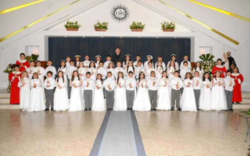 49 estudiantes del Colegio San Luis Gonzaga recibieron el sacramento de la Primera Comunión en una eucaristía presidida por el sacerdote Álvaro Vélez Escobar S.J., rector del Colegio.