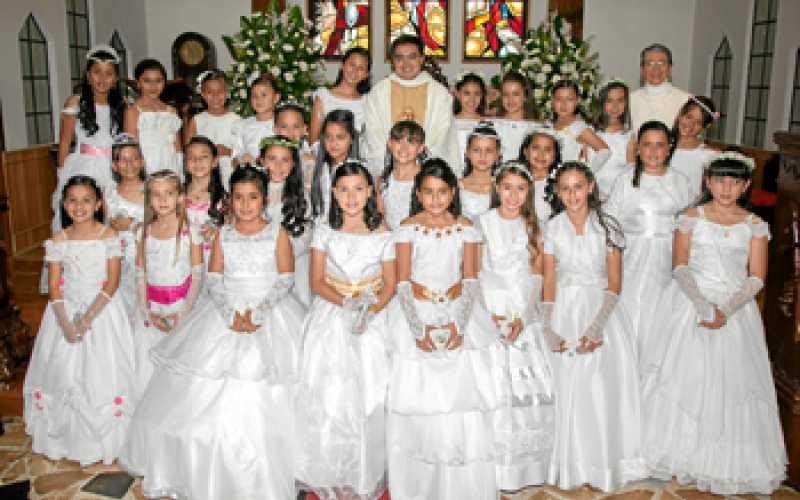 Un grupo de niñas del Colegio Nuestra Señora del Rosario recibió el sacramento de la Comunión en ceremonia que presidió el presbítero Emerson Arango Gómez, capellán del colegio, en el templo de Nuestra Señora de los Dolores.