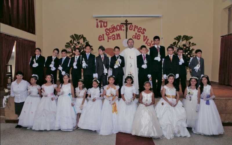 23 niños del Colegio Filipense, celebraron el pasado sábado 4 de octubre su gran día: La Primera Comunión, en ceremonia presidida por el Padre Germán Rodrigo Ramírez. Acompañaron el proceso catequético la hermana María Eugenia López y Olga Cecilia Agudelo, quienes también prepararon detalladamente la ceremonia. Cada momento fue de gran bendición para niños, padres, familiares, directivas y docentes; testigos del gran fervor con que recibieron a Jesús Eucaristía.