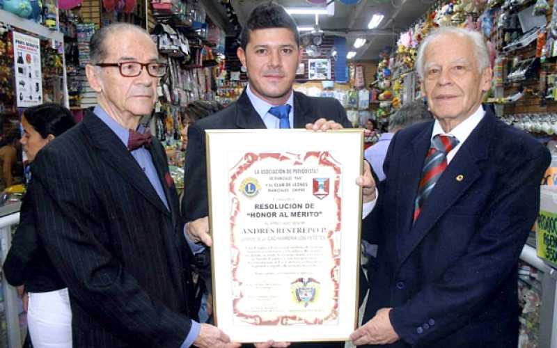 Directivos de Periodistas Asociados de Manizales (Pam) y del Club de Leones Manizales Chipre entregaron la resolución Honor al Mérito a Carlos Andrés Restrepo Pineda, quien fue exaltado durante el acto conmemorativo del Día del Trabajo que organizaron esas instituciones.