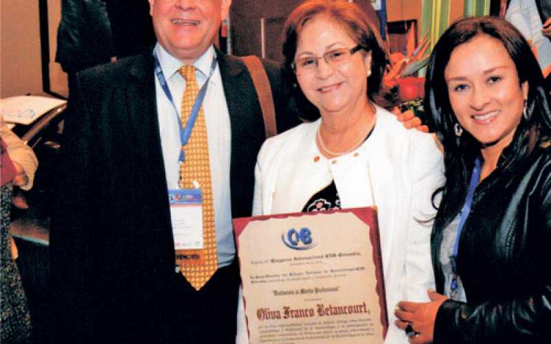 El Colegio Nacional de Bacteriología CNB COLOMBIA, en el marco del Decimosexto Congreso Internacional realizado en la ciudad de Bogotá del 4 al 7 de noviembre del presente año, hizo entrega de la distinción al MERITO PROFESIONAL a la bacterióloga OLIVA FRANCO BETANCURTH, quien por su vida ejemplar y su gran aporte a la profesión desde la investigación y la docencia, ha sido un modelo de rectitud, honestidad, vocación de servicio, compromiso con el gremio y sobre todo, ética profesional.