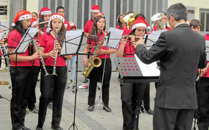 La Banda Estudiantil de Música de Aranzazu, que dirige Marino Escobar Arias, ofreció una serenata navideña en la Plaza de Bolívar del Municipio.