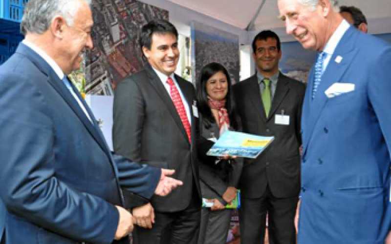El príncipe Carlos de Gales y su esposa, la duquesa de Camila de Cornualles, visitaron el stand de Findeter en la Feria Orgánica y de Sostenibilidad, que organizó la Embajada Británica en Bogotá para presentar el programa Ciudades sostenibles y competitivas, que tiene el apoyo de Prosperity Fund del gobierno británico.