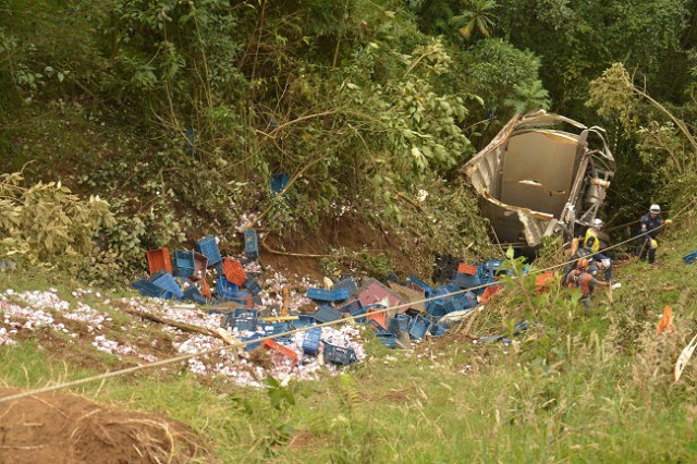 En la curva se apreciaban ayer huellas de llantas, el impacto contra un sardinel, así como árboles partidos y tierra removida. En la rodada la cabina se separó de la carrocería, que se clavó en el fondo del abismo. Malagón Quiroga quedó en su puesto, aprisionado por las latas y el timón.