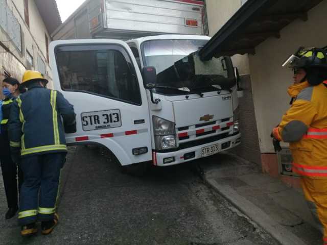 ANSERMA. En la calle 14, entre carreras tercera y cuarta, un camión con fallas mecánicas se estrelló contra una vivienda. El conductor salió ileso y solo hubo daños materiales. Defensa Civil y Bomberos atendieron el caso.