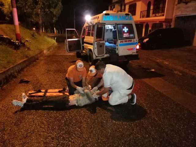ANSERMA. Voluntarios de la Defensa Civil atendieron, en la madrugada del domingo un accidente en la avenida El Libertador. El conductor de una moto fue valorado en el sitio y llevado al Hospital San Vicente de Paúl.