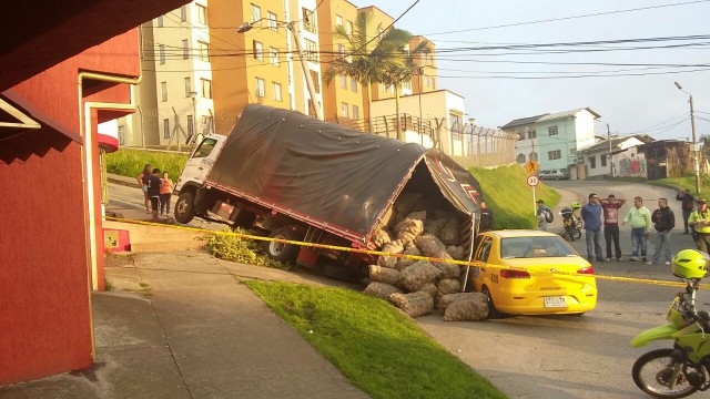 El pasado sábado en la calle 47 con carrera 20 del barrio San Jorge, un camión cargado de papas se devolvió cuando subía por una pendiente. Al vehículo lo paró un poste, que ya fue reemplazado. Un taxi que transitaba por el lugar tuvo algunos daños.