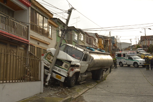 En el otro accidente, que ocurrió hacia las 3:50 de la tarde, en el barrio La Primavera, un carrotanque, cargado de aceite vegetal, se llevó las rejas de los antejardines de dos casas y un poste detuvo su marcha. El conductor resultó ileso.