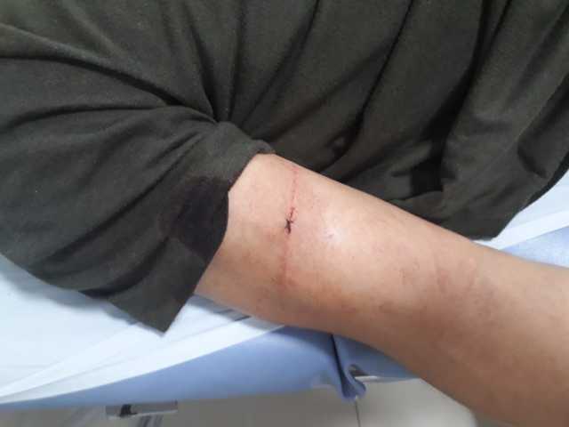 "Uno entregó el cuchillo, pero los otros dos, que tenían machetes en el costado del pantalón, se tornaron agresivos. Me defendí con la tonfa, solicité apoyo por radio a unidades del cuadrante. Los tipos huyeron hacia el barrio Chachafruto, los buscaron, pero escaparon. Me lesionaron en el brazo derecho. Estuve tres días hospitalizado y me incapacitaron hasta el 7 de febrero".
