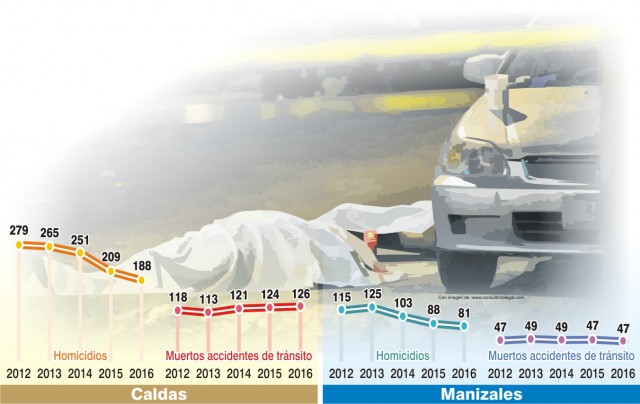 De los tres departamentos del Eje Cafetero, Caldas registró las cifras más bajas de homicidios en el 2016. Así se muestra en los datos preliminares que publicó el Centro de Referencia Nacional sobre Violencia, del Instituto Nacional de Medicina Legal y Ciencias Forenses (ver infográfico).