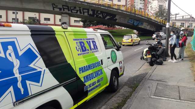 Manizales. ByR atendió este accidente ayer. Caída de motociclista en el sector de La Autónoma, por reguero de ACPM. Se lesionó una pierna.