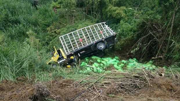 Un camión, que transportaba 307 cilindros de Gas Licuado de Petróleo (GLP) de la empresa Vidagás, rodó unos 30 metros hacia un voladero.